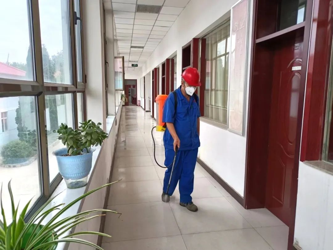 基层单位职工正在对工作区域进行消杀 。